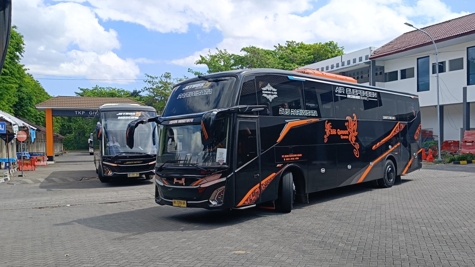 • Medium Bus Pariwisata (±31–39 seat) yang pas untuk grup sedang atau perjalanan lebih fleksibel.