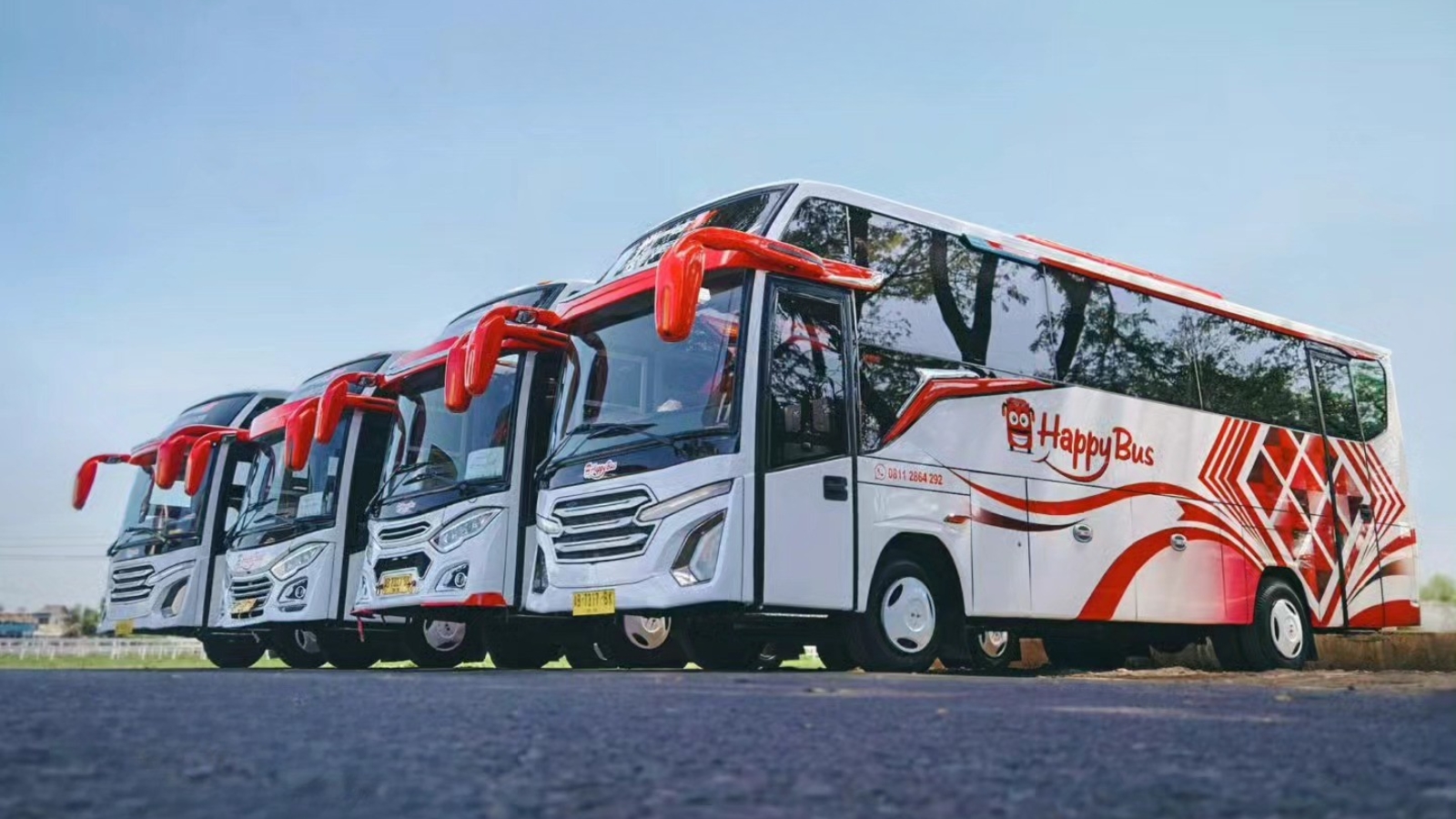 Happy Bus menyediakan beragam pilihan armada bus pariwisata modern yang bisa disesuaikan dengan skala rombongan: